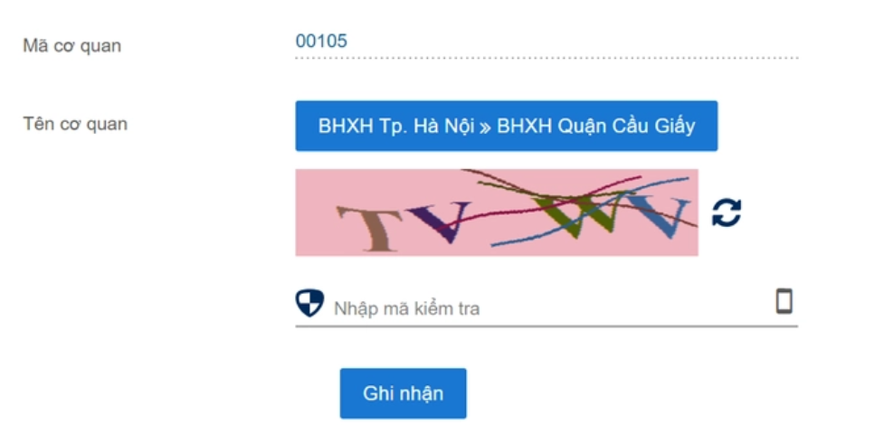 Bước 5: Nhập mã kiểm tra và ấn Ghi nhận.