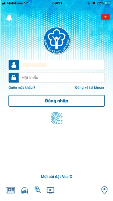 Bước 2: Đăng nhập tài khoản VssID theo mã số BHXH và mật khẩu do cơ quan BHXH cung cấp.